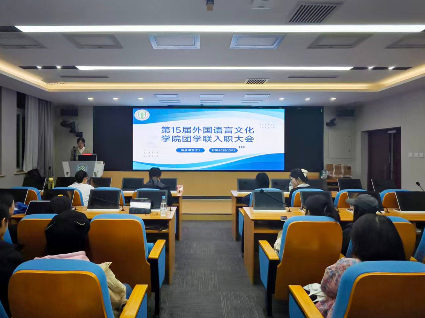 2025年10月15日晚,外国语言文化学院第二届研究生会团总支(简称团学联)入职大会在教五楼311室顺利召开。学院党委书记杨天乔老师、研究生团总支书记祁梦含老师、研究生会指导老师纪彤心老师以及团学联全体成员参加了本次会议。会议由执行主席郭航硕主持。