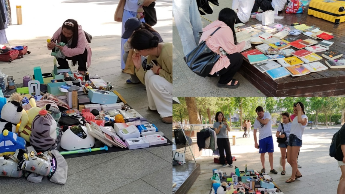 市集上各个摊位整齐排列,琳琅满目的商品令人目不暇接。“知识摊位”上,专业书籍、学习笔记、参考资料、各类图书安静地躺在那里,等待新主人开启知识探索之旅;“女生摊位”挂满了时尚的衣服、精致的饰品和实用的化妆品,吸引了不少女生驻足挑选;“追星摊位”陈列着各种爱豆卡片、精美摆件,让追星族们欣喜不已;“文创摊位”则将各类精美物品、装饰摆件、盲盒玩偶等巧妙融合,充满新奇与趣味。恰逢毕业季,许多毕业生摊主怀着不舍与期待,精心整理出陪伴自己多年的好物。随着物品的流转,不仅实现了资源再利用,更在学弟学妹们手中延续着深厚的校园情谊。穿梭于市集之中,同学们以实惠的价格收获心仪好物,赋予闲置物品新的使命与价值。
