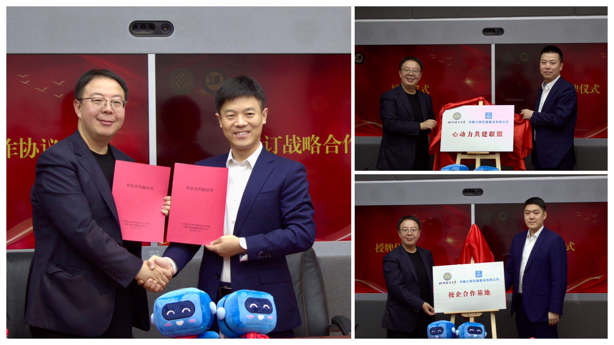 12月15日下午,外国语言文化学院与中建六局交通建设有限公司在教五楼334会议室举行“校企合作共建基地”授牌暨导师互聘仪式,双方围绕校企合作、党建共建开展深度座谈,并签署战略合作协议。