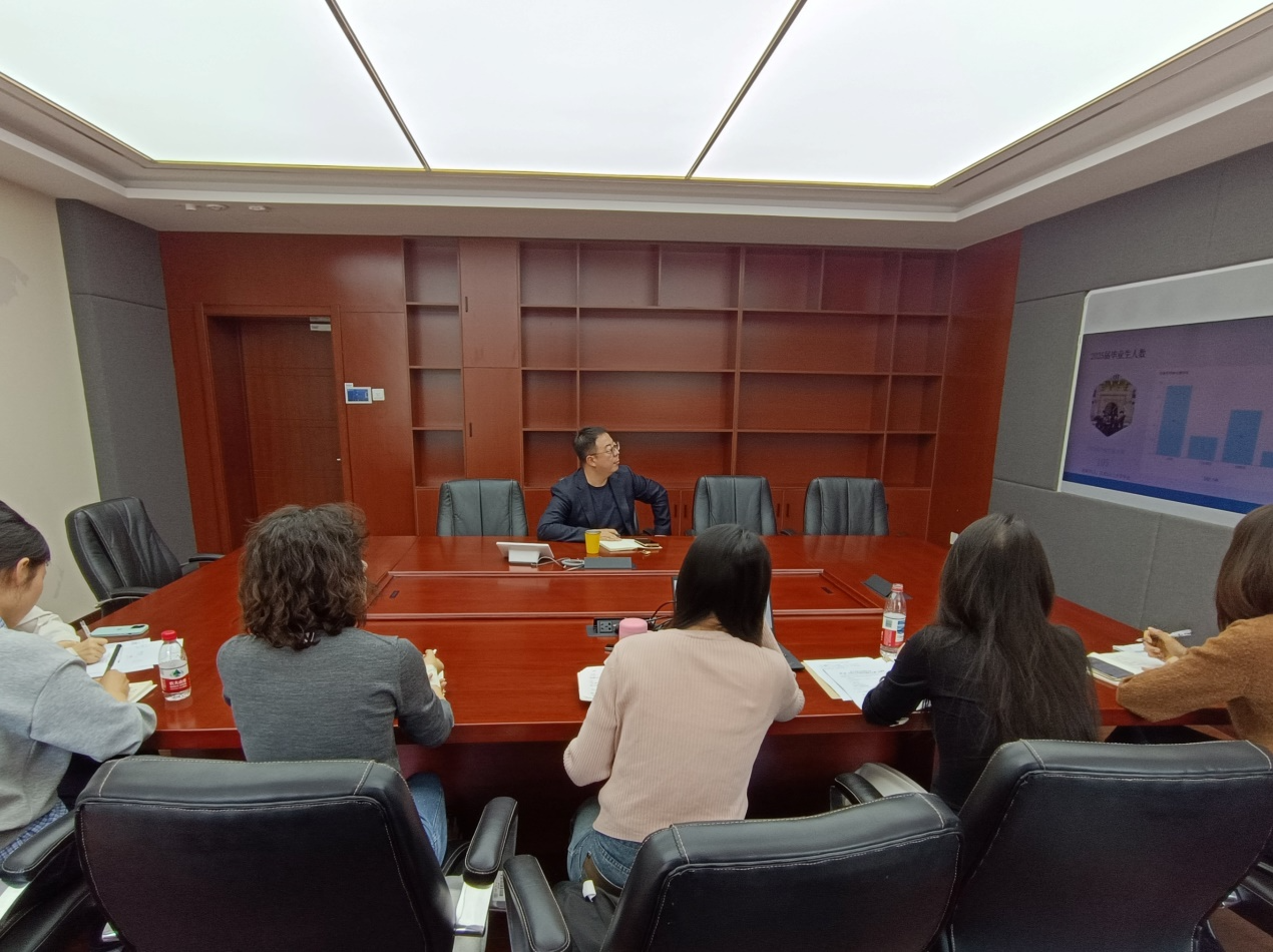 毛星月老师作为代表,从就业基本数据情况、已开展的工作内容、存在的困难问题和下一步工作计划等方面就亚洲语系2025届毕业生阶段性就业进展进行发言。毛老师从专业和班级等不同维度将毕业生海内外升学、单位就业等具体就业情况进行详细介绍,并就上一年度就业育人工作中可复制的优秀经验做法加以分享。毛老师指出,亚洲语系下一步将从强化就业指导服务、充分宣传各类就业利好政策、精准帮扶就业困难学生等方面全方位发力,提升毕业生的就业竞争力。