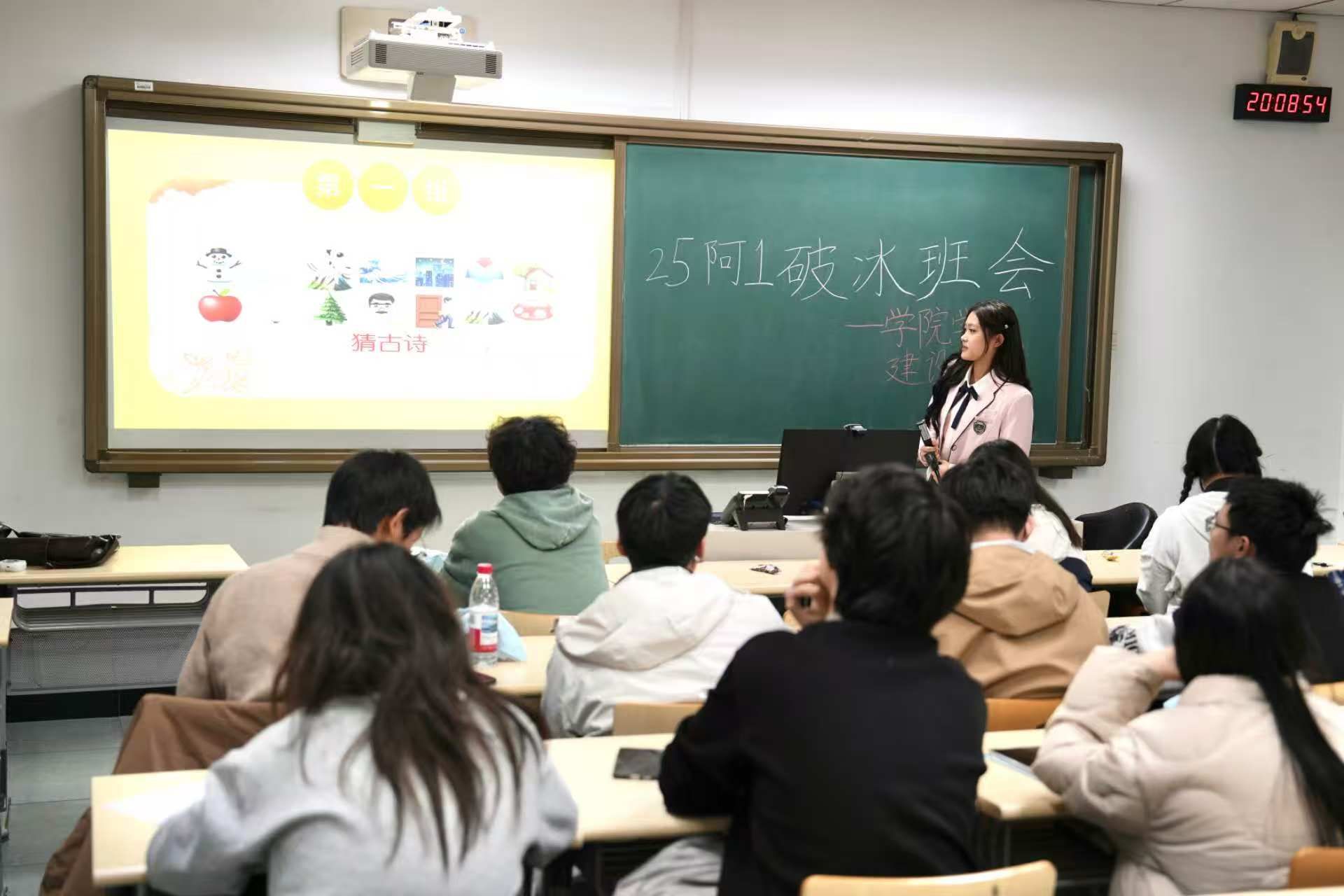 班委们策划的“文化寻踪·同舟共济”破冰游戏迅速拉近了同学距离。同学们通过随机分组,在“缘来是你”、“你来你也不bingo”、“emoji猜成语古诗挑战”等一系列融合中华优秀传统文化的互动环节中增进了解、建立默契。在轻松愉快的氛围中,大家不仅加深了对彼此的认识,也在协作中感受到传统文化的魅力。